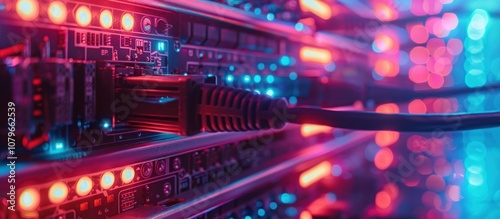 Fototapeta premium Close-up of Network Cables in a Data Center