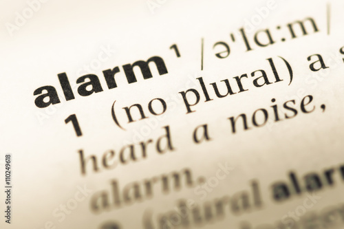 © TungCheung, Obraz premium Close up of old English dictionary page with word alarm