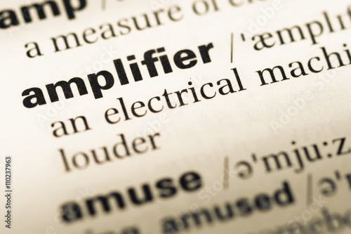 © TungCheung, Fototapeta premium Close up of old English dictionary page with word amplifier