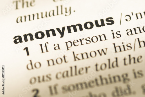 © TungCheung, Obraz premium Close up of old English dictionary page with word anonymous