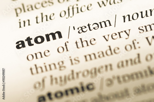 © TungCheung, Obraz premium Close up of old English dictionary page with word atom
