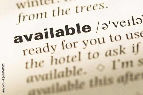 © TungCheung, Obraz premium Close up of old English dictionary page with word available