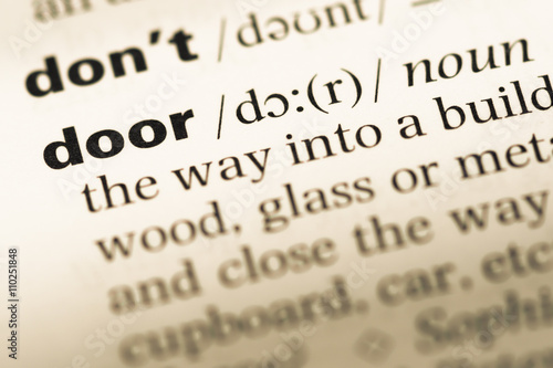 © TungCheung, Fototapeta premium Close up of old English dictionary page with word door
