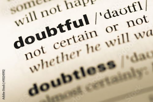 © TungCheung, Fototapeta premium Close up of old English dictionary page with word doubtful