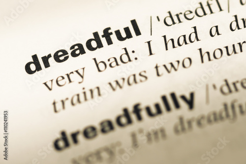 © TungCheung, Obraz premium Close up of old English dictionary page with word dreadful