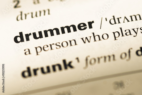 © TungCheung, Obraz premium Close up of old English dictionary page with word drummer