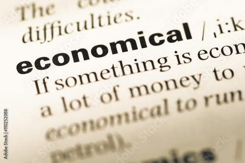 © TungCheung, Fototapeta premium Close up of old English dictionary page with word economical