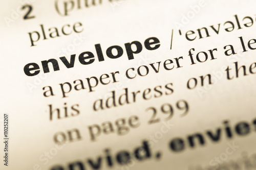 © TungCheung, Obraz premium Close up of old English dictionary page with word envelope