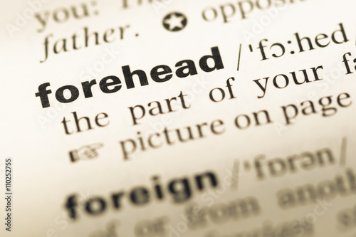 © TungCheung, Obraz premium Close up of old English dictionary page with word forehead