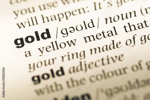 © TungCheung, Obraz premium Close up of old English dictionary page with word gold