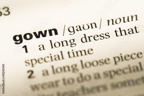 © TungCheung, Obraz premium Close up of old English dictionary page with word gown