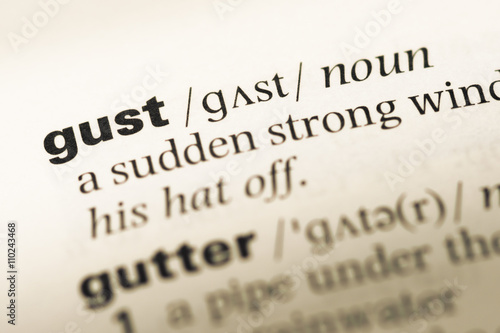 © TungCheung, Fototapeta premium Close up of old English dictionary page with word gust