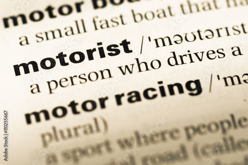 © TungCheung, Obraz premium Close up of old English dictionary page with word motorist