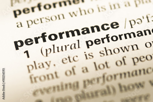 © TungCheung, Obraz premium Close up of old English dictionary page with word performance