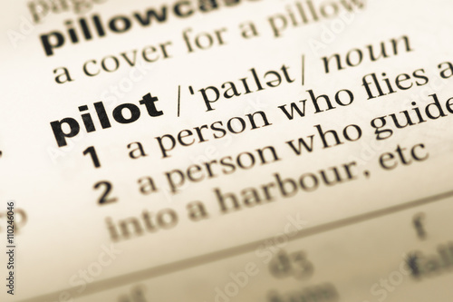 Obraz premium Close up of old English dictionary page with word pilot
