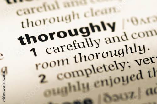 © TungCheung, Obraz premium Close up of old English dictionary page with word thoroughly