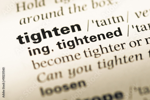 © TungCheung, Obraz premium Close up of old English dictionary page with word tighten