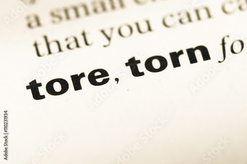 © TungCheung, Obraz premium Close up of old English dictionary page with word tore torn