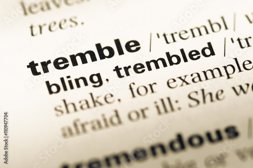 © TungCheung, Obraz premium Close up of old English dictionary page with word tremble