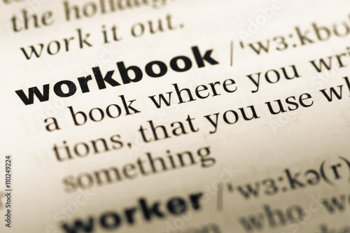 © TungCheung, Obraz premium Close up of old English dictionary page with word workbook