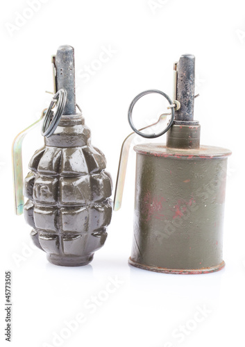 © mariusz szczygieł, Fototapeta premium Close-up of old training grenades isolated on a white background