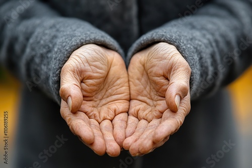 © NikahGeh, Fototapeta premium Close-up of Open Hands with Wrinkled Skin