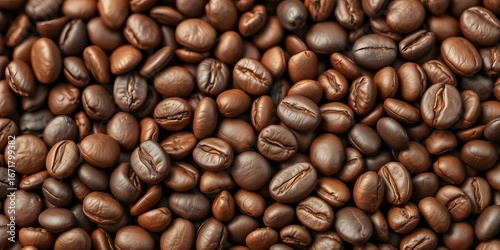 Fototapeta premium Close-up of organic coffee beans, rich brown hues, earthy tones, drink,...