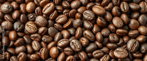 Fototapeta premium Close-up of organic coffee beans, rich brown tones, rustic texture, grain,...
