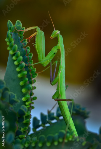 Naklejka premium Close up of pair of Beautiful European mantis ( Mantis religiosa )