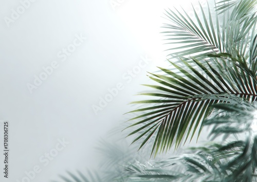 Obraz premium Close-up of palm fronds against a hazy light background
