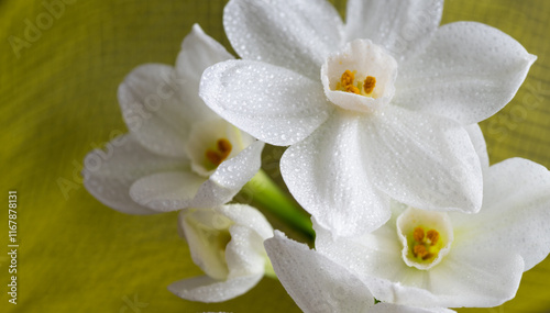 Obraz premium Close up of Paperwhite Narcissus Flowers on Colorful Background