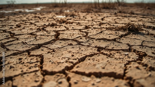 Fototapeta premium Close-Up of Parched Crackled Soil in a Drought-Stricken Landscape