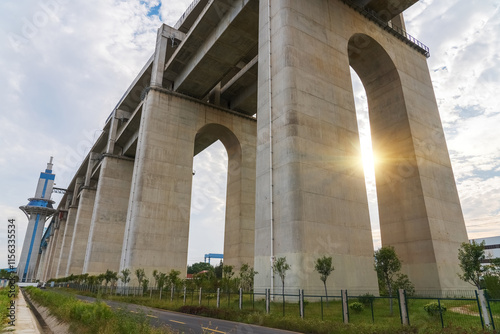 © q, Naklejka premium Close up of Partial Details of Suzhou Yangtze River Bridge in Jiangsu Province, China on August 20, 2024