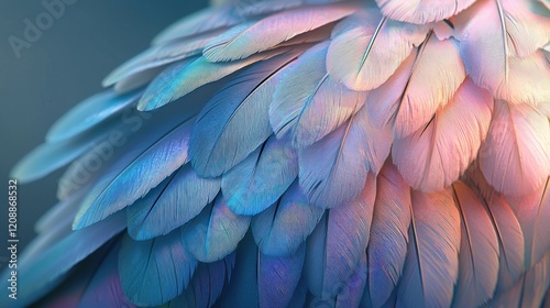 © Gendut, Fototapeta premium Close-up of pastel blue and pink bird feathers.