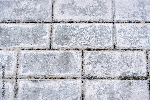 Naklejka premium Close up of paving stones with salt deposits used for ice prevention in...