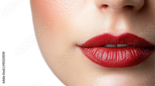 © Natthakan, Obraz premium Close-up of perfect red lips with soft skin. transparent background