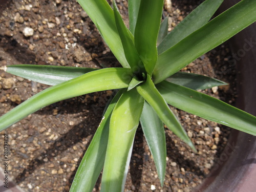 © mayuberu, Obraz premium Close up of pineapple plant in a pot