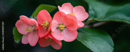 Fototapeta premium Close-up of pink and white flowers with green leaves in natural setting