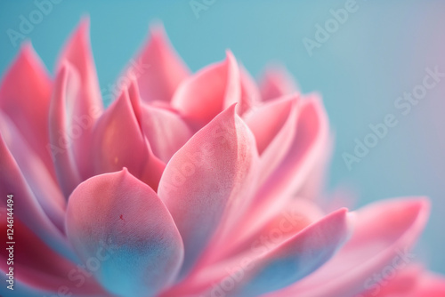 © Dima, Fototapeta premium close up of pink cactus flower on blue background, soft focus. Generative AI