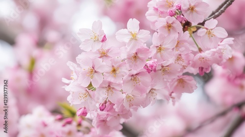 Fototapeta premium Close-up of pink cherry blossoms in full bloom on a sunny day