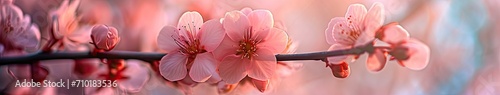 © BrandwayArt, Naklejka premium Close Up of Pink Flowers on Branch