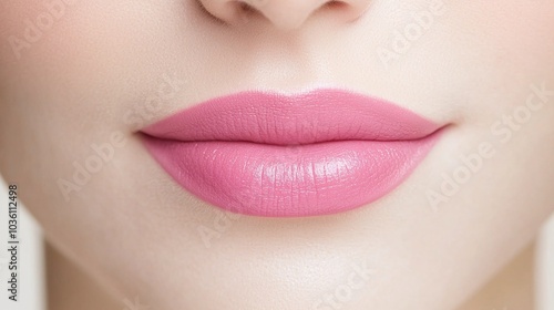 Obraz premium Close-up of pink lips, soft and smooth texture, minimal makeup, natural lip color, beauty and skincare, feminine aesthetic, fresh look, pastel tones, clean background