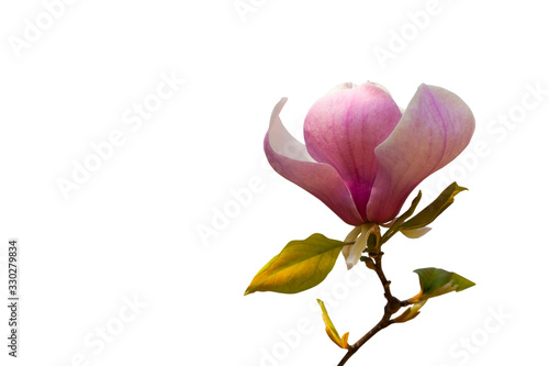 © Oleh, Fototapeta premium Close up of pink magnolia flower isolated on white