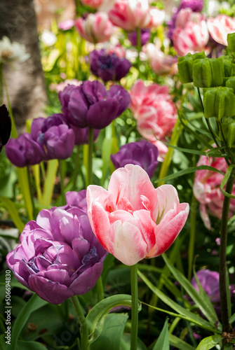 © Anna Payne, Fototapeta premium Close up of pink, violet and purple tulips