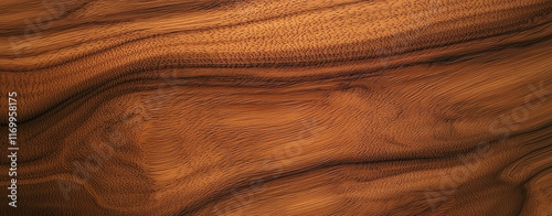 © JONATHAN, Naklejka premium Close-Up of Polished Walnut Wood Surface with Natural Grain Patterns