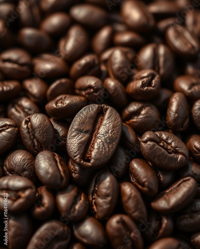 © Derek Brumby, Naklejka premium Close-Up of Premium Dark Roast Coffee Beans Sprawled on a Surface