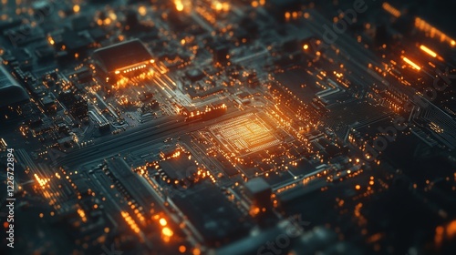 © Rauf, Fototapeta premium Close-up of printed circuit boards, highlighting intricate electronics connections