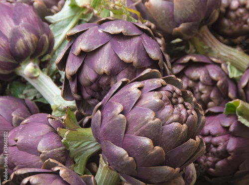 © Victoria Schaal, Obraz premium Close up of purple artichokes