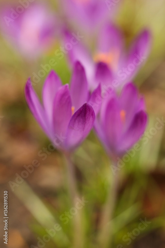 © gabriela, Fototapeta premium Close up of purple crocus (Crocus sativus) flower