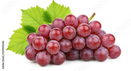 © Burak, Obraz premium Close-up of Purple Grapes with Leaves on White Background